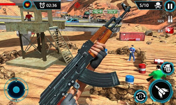Welcome to the new fps shooting game. In this game, your mission is to destroy enemy camps to save your country from terrorism. In this single-player missions game, you need a quick reaction and tactical skill to become the terrorist battle hero. You are a well-trained real commando and you are equipped with modern weapons. Become the best gun shooter against helicopters, terrorist jeeps, and suicide bombers.