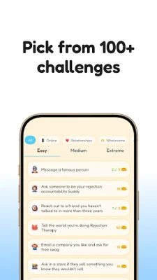 Perfect for anyone wanting to improve social skills, overcome social anxiety, build self-confidence, or practice exposure therapy. Join thousands using rejection challenges to transform fear into confidence.