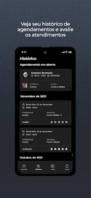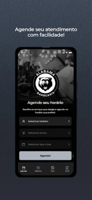 Através do App Alabama Barbearia os clientes podem realizar seus agendamentos de uma forma muito mais prática. Na tela inicial, é possível selecionar os serviços e horário desejado para seu próximo atendimento. Já na tela de histórico, você poderá confirmar ou cancelar seus agendamentos. É possível também na tela do perfil o cliente editar suas informações, como e-mail, foto de perfil e telefone.