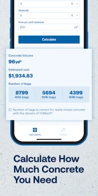 2️⃣ Bags or Yards - not sure how many bags of mix to buy or yards to order? Just input your project details and the app converts volume to either bags or yards. No more guesswork.