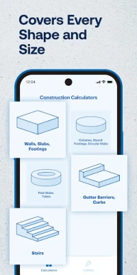 - Concrete Estimator: Reliable calculations for structures like walls, footings, and slabs.