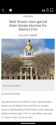 The Alabama News Wire is your trusted source for in-depth journalism, delivering Alabama’s local, political, and investigative stories straight to your device. Whether you're looking for breaking headlines or thoughtful reporting, our app puts the heart of Alabama news at your fingertips. Stay informed with the latest from Fayette County and surrounding areas.